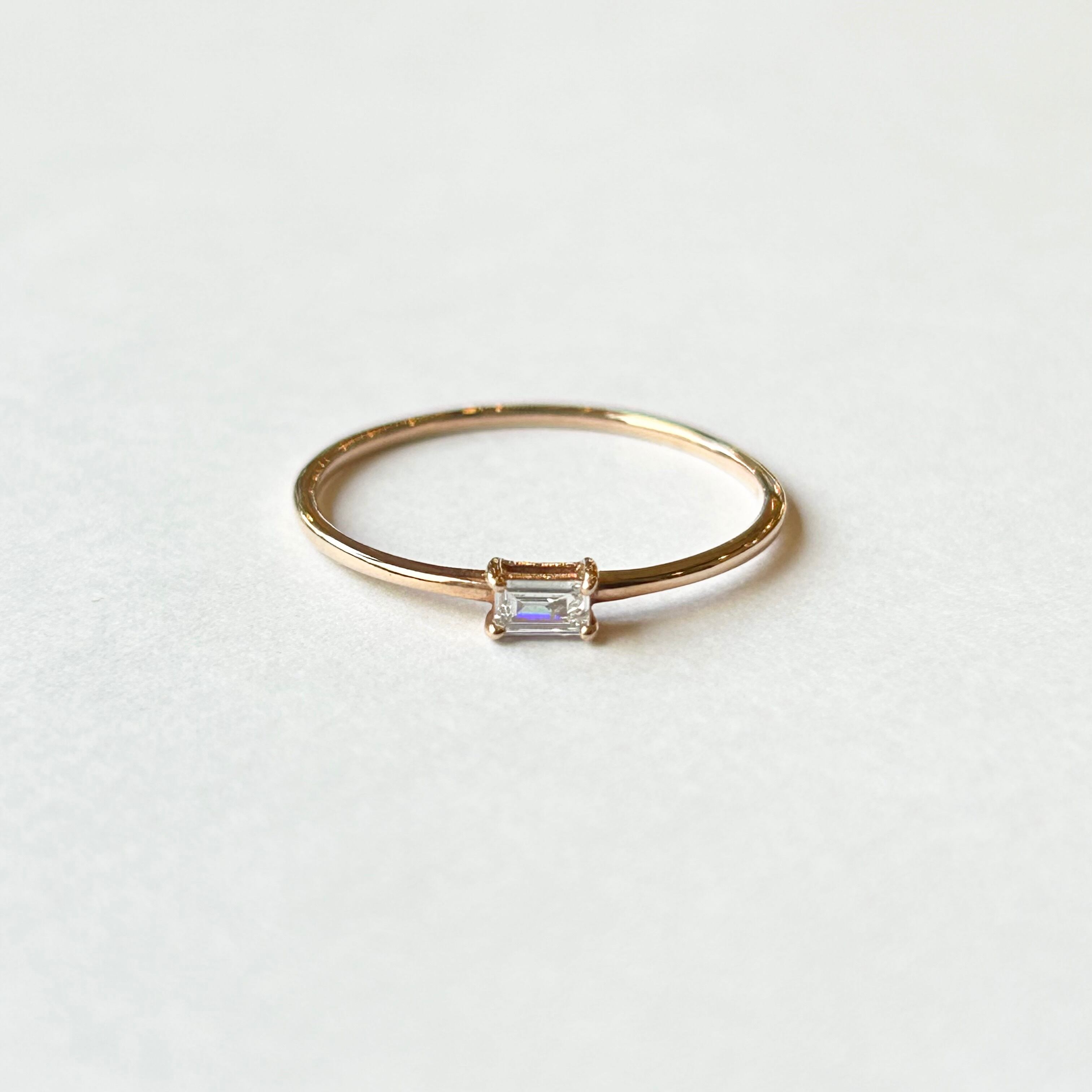 バケットカットのダイヤモンドがセッティングされた細めのピンクゴールドリング。
